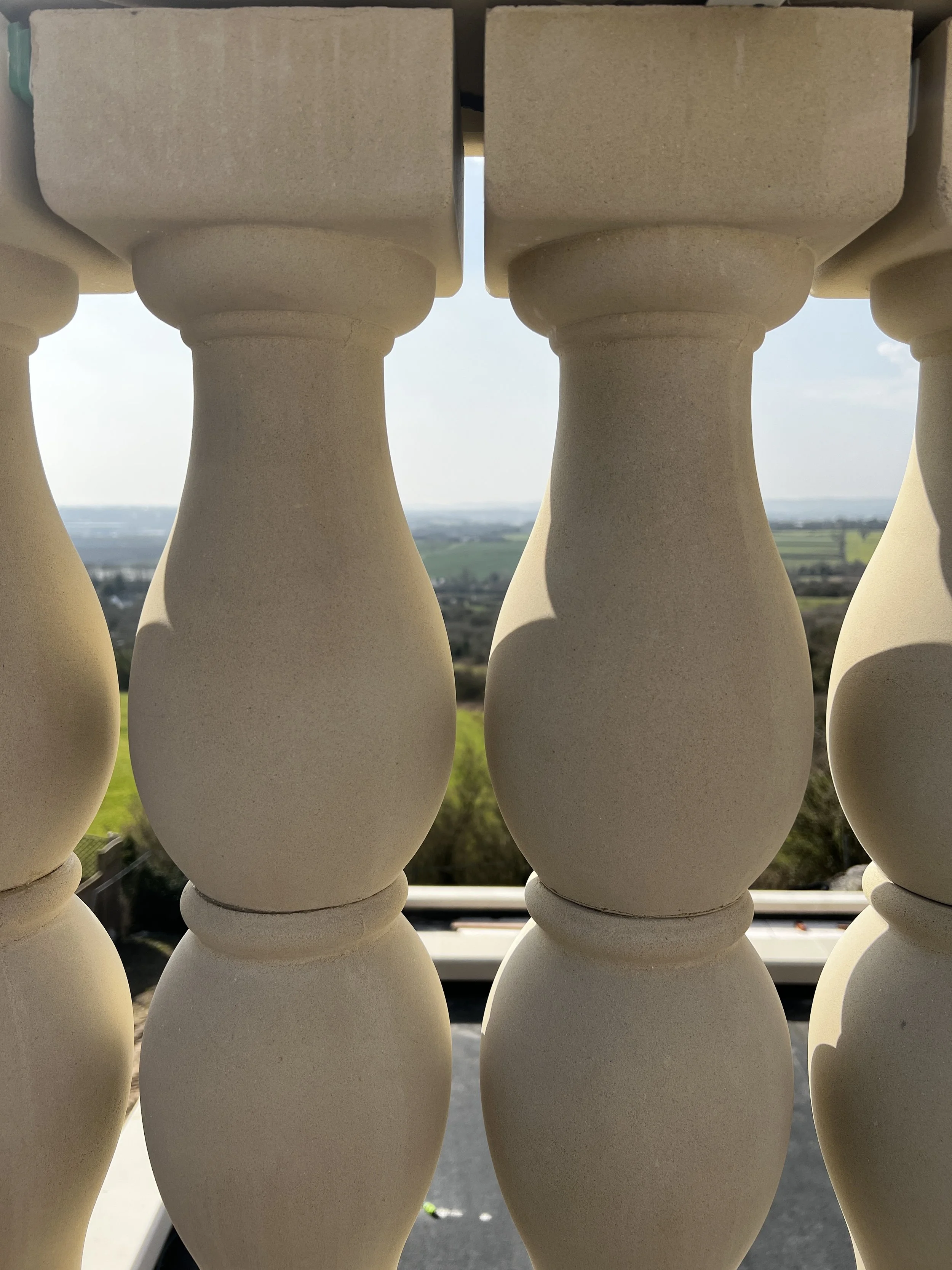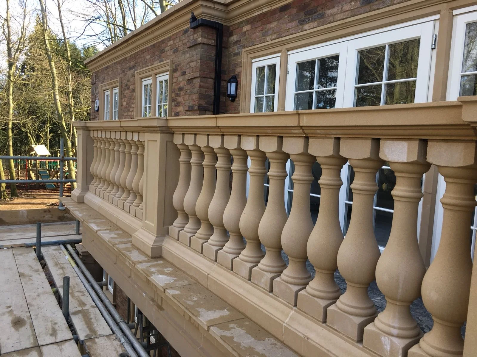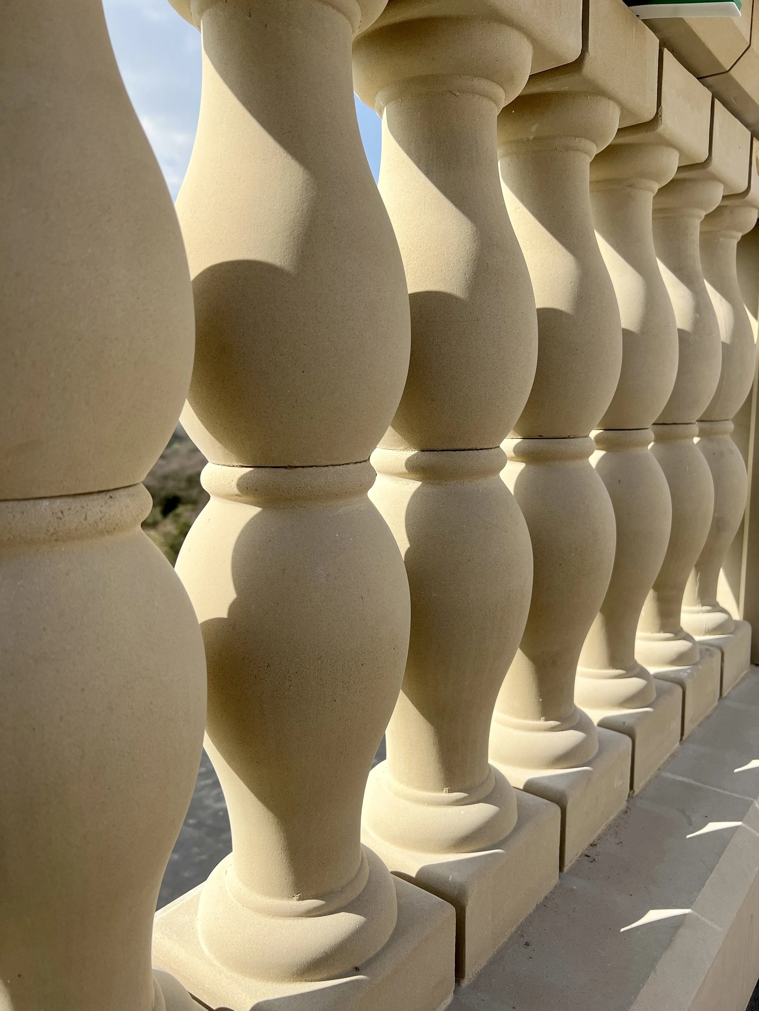 A balustrade is a decorative and functional railing system, typically composed of a series of balusters (vertical posts) supporting a handrail. Made from materials like stone, concrete, or cast stone, balustrades are used for safety and to enhance architectural elegance.