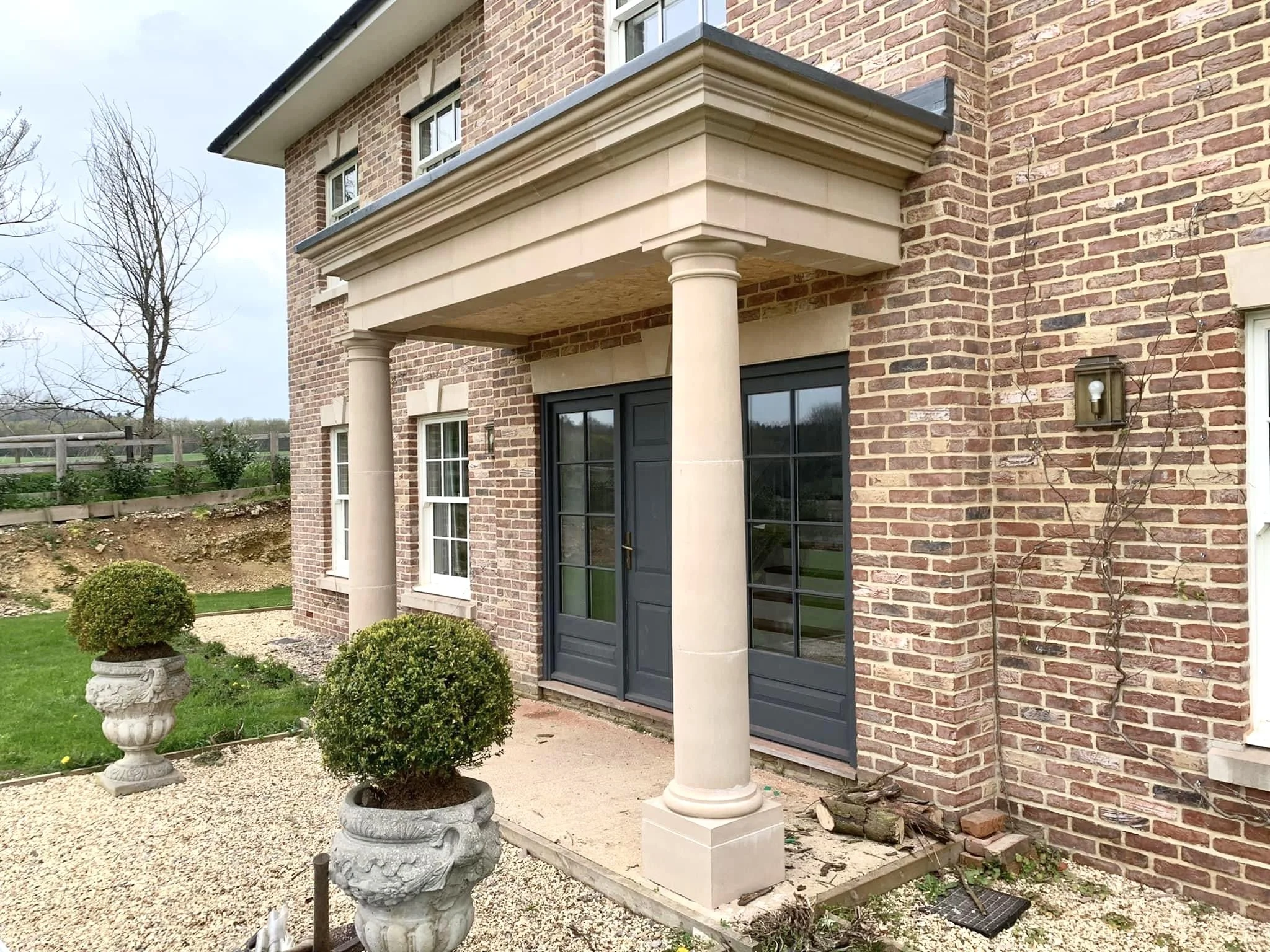A portico is a structural and decorative feature consisting of a covered entrance supported by columns or pillars, often enhancing the facade of a building. Typically crafted from materials like stone, concrete, or cast stone, porticos combine practicality with architectural elegance.