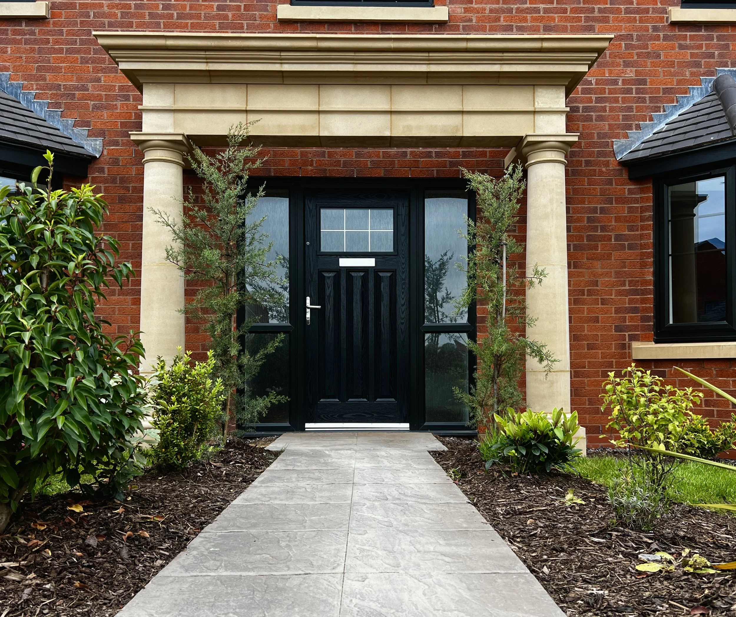 Architectural Identity: Highlight and frame the main entrance, creating a welcoming focal point.